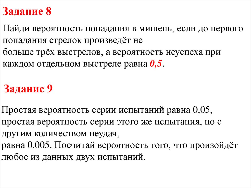 Задание 8Найди вероятность попадания в мишень, если до первого