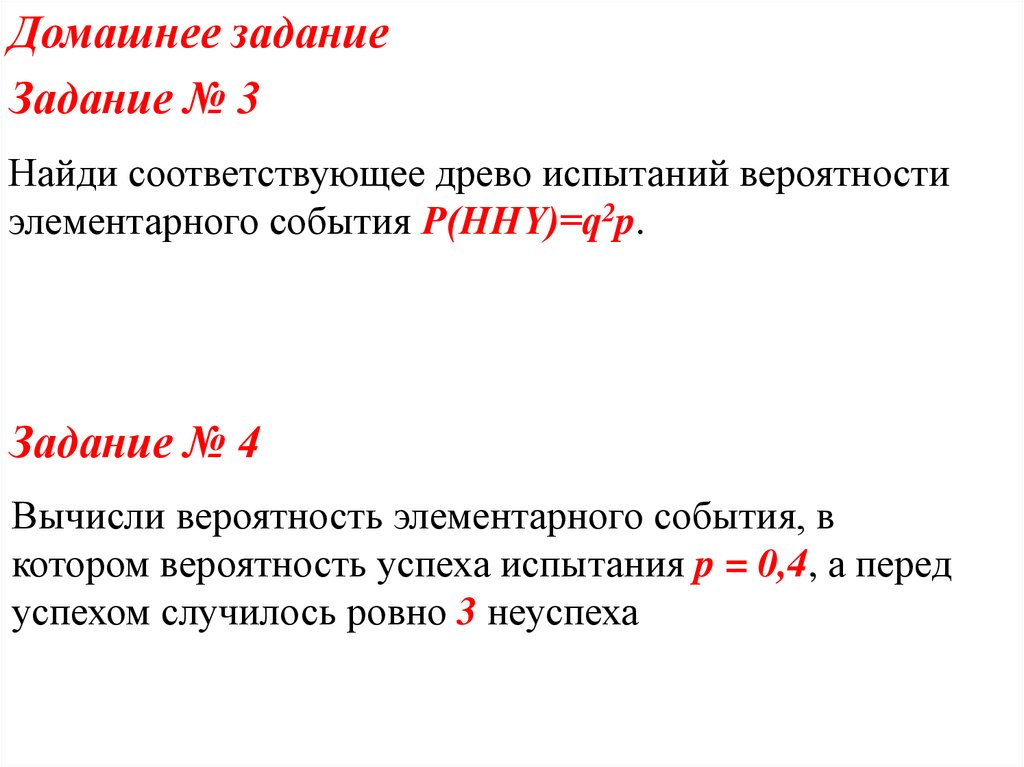 элементарного события P(ННY)=q2p.