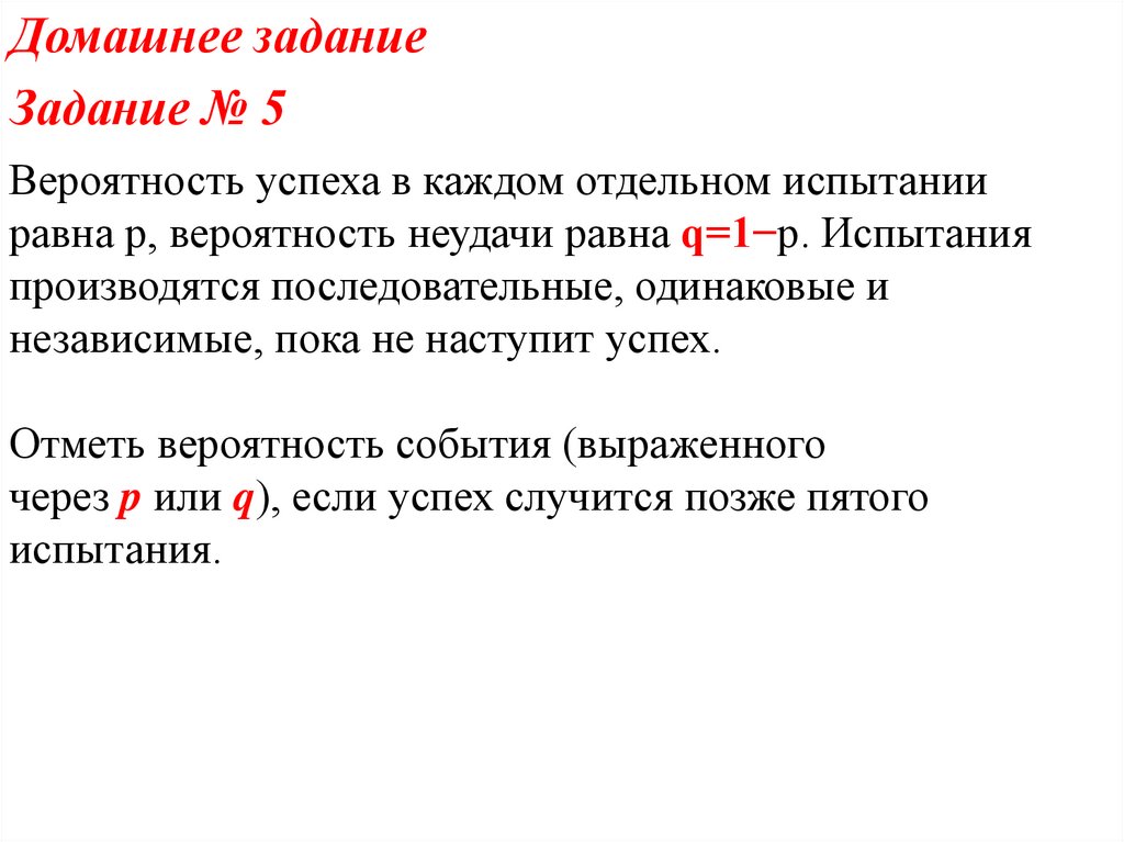 через p или q), если успех случится позже пятого