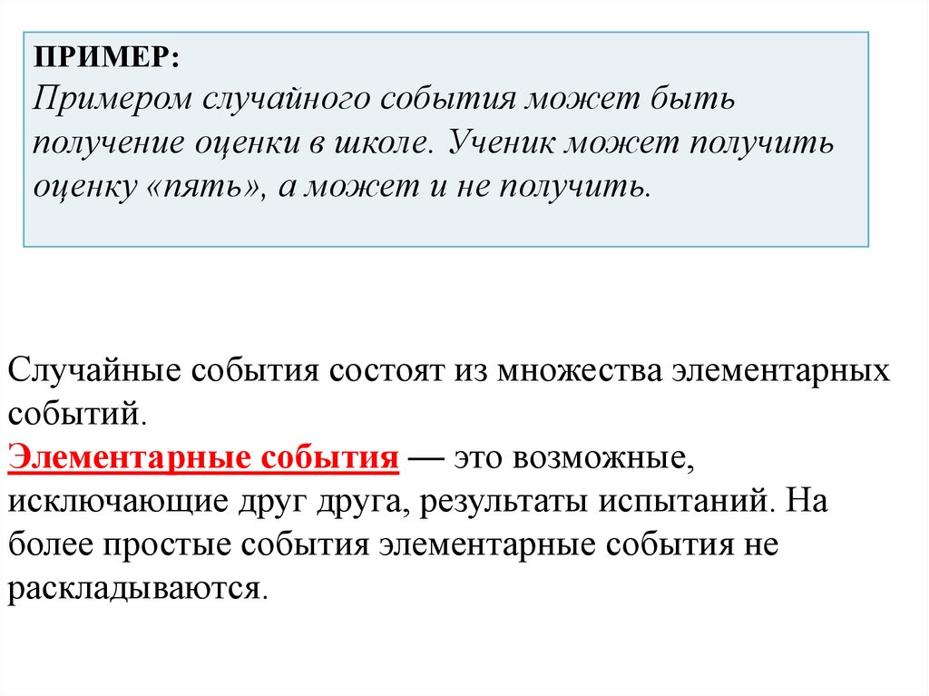 ПРИМЕР:Примером случайного события может быть