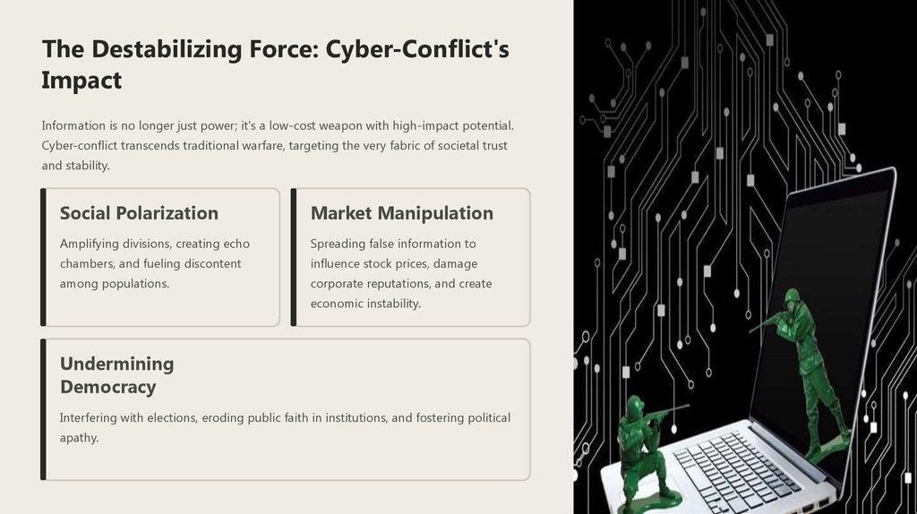 Cyber-conflict transcends traditional warfare, targeting the very fabric of societal trust