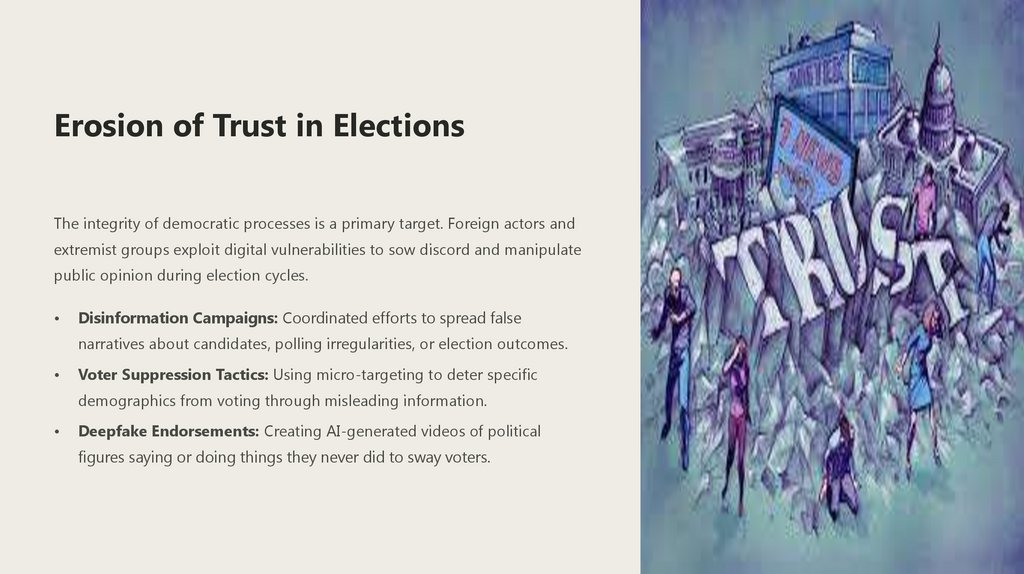 Erosion of Trust in ElectionsThe integrity of democratic processes is a primary target. Foreign actors and