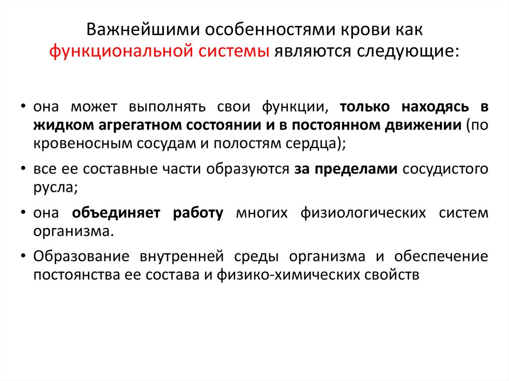 Важнейшими особенностями крови какфункциональной системы являются следующие: