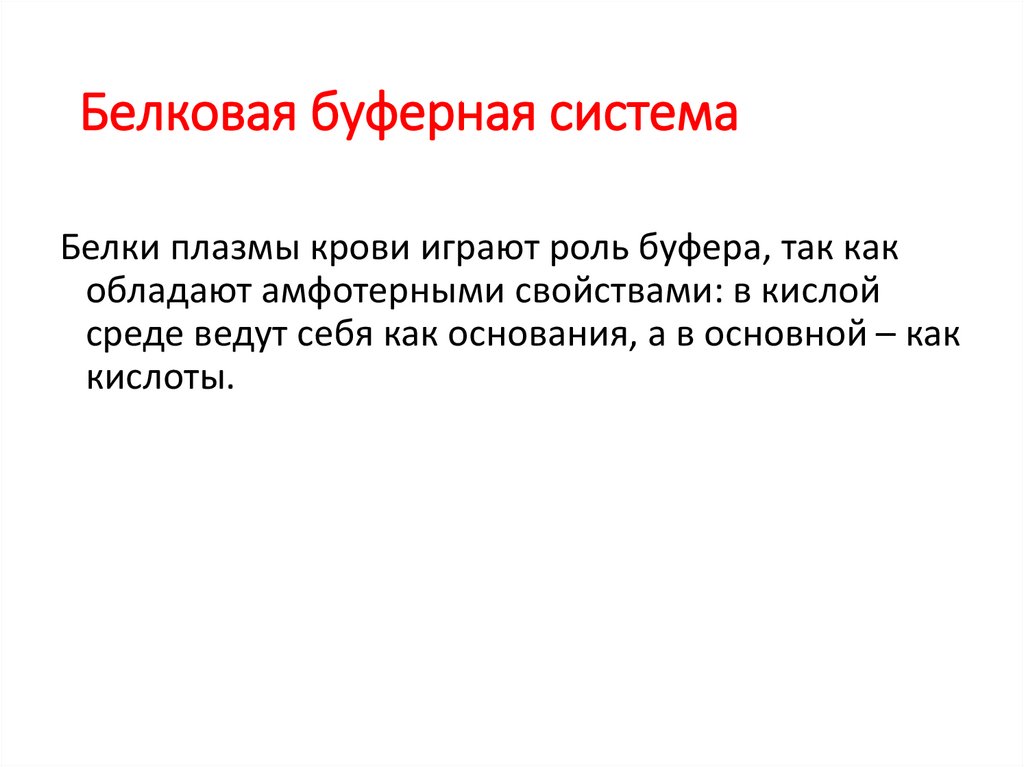 Белковая буферная системаБелки плазмы крови играют роль буфера, так как