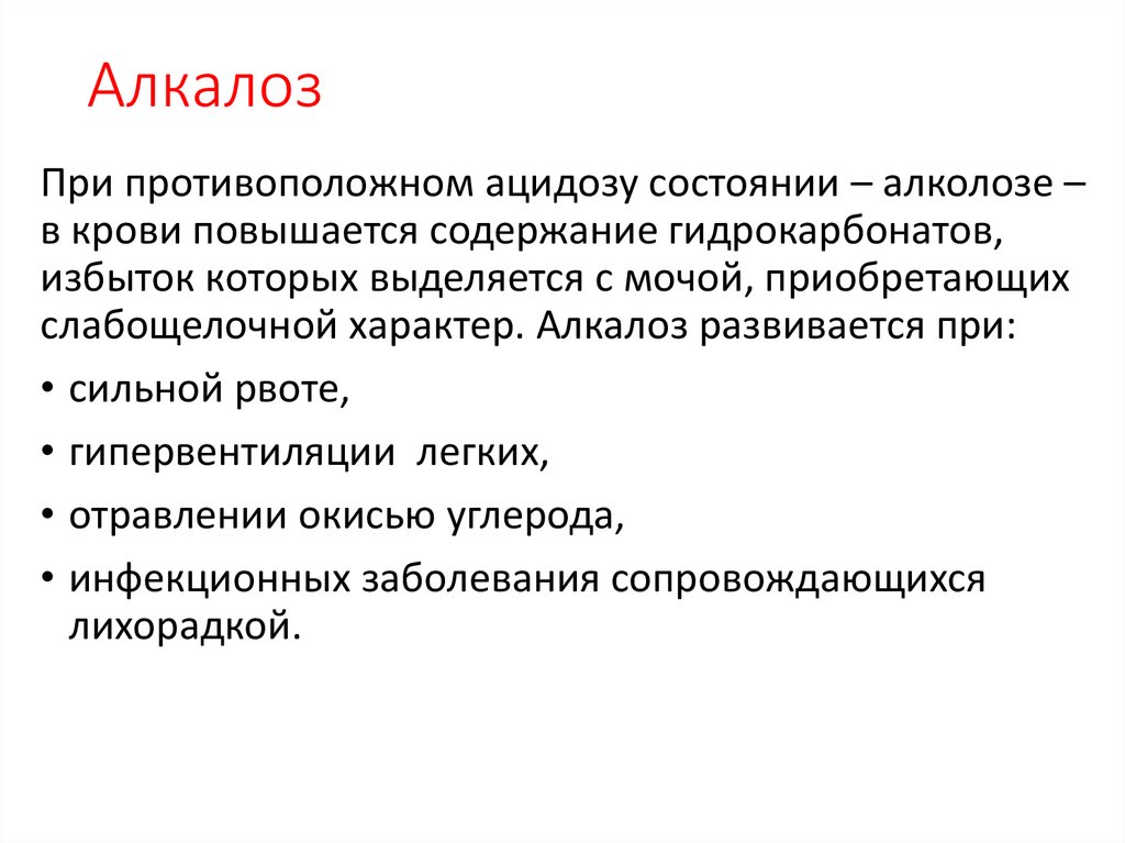 АлкалозПри противоположном ацидозу состоянии – алколозе –