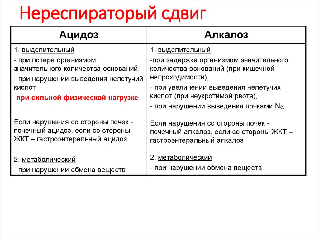 Если нарушения со стороны почек почечный алкалоз, если со стороны ЖКТ –
