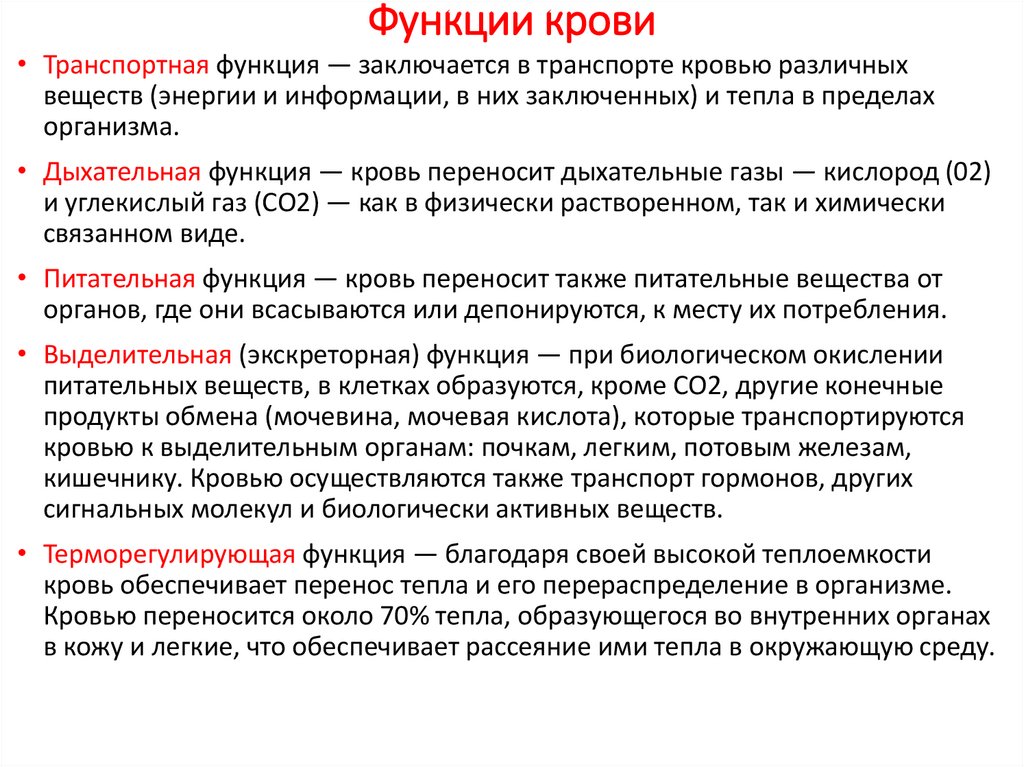 Функции крови• Транспортная функция — заключается в транспорте кровью различных