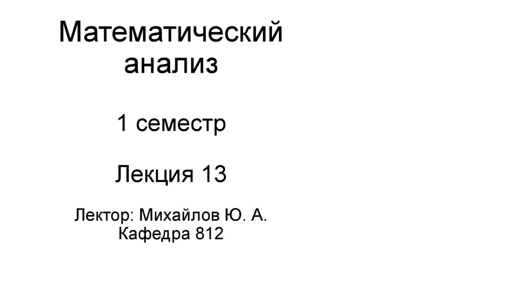 1. Математический анализ 1 семестр Лекция 13 Лектор: Михайлов Ю. А. Кафедра 812