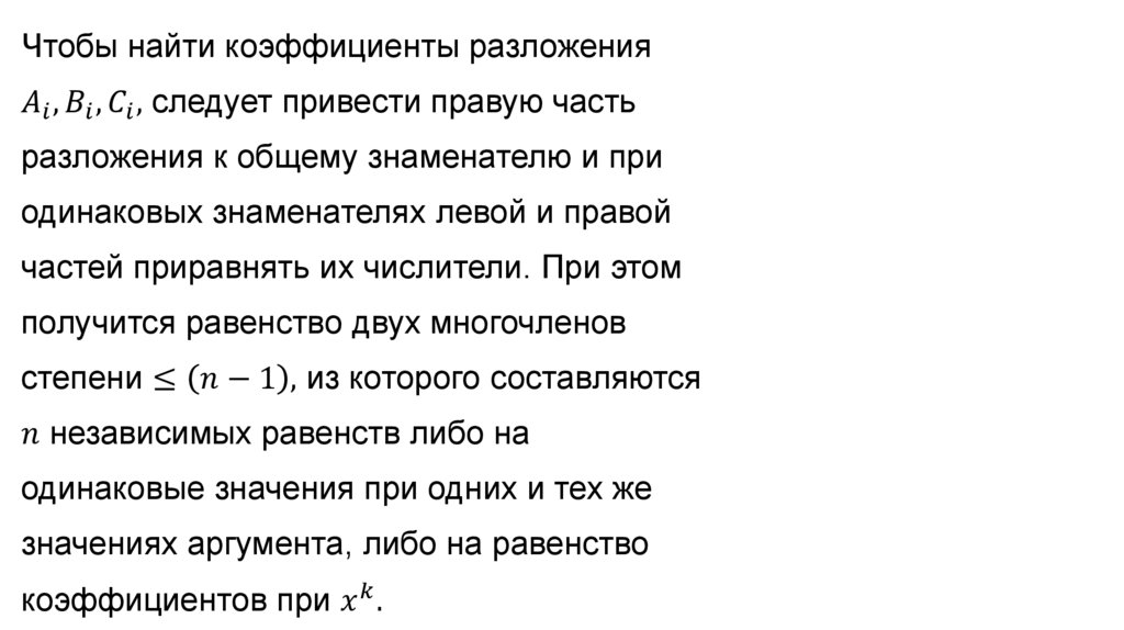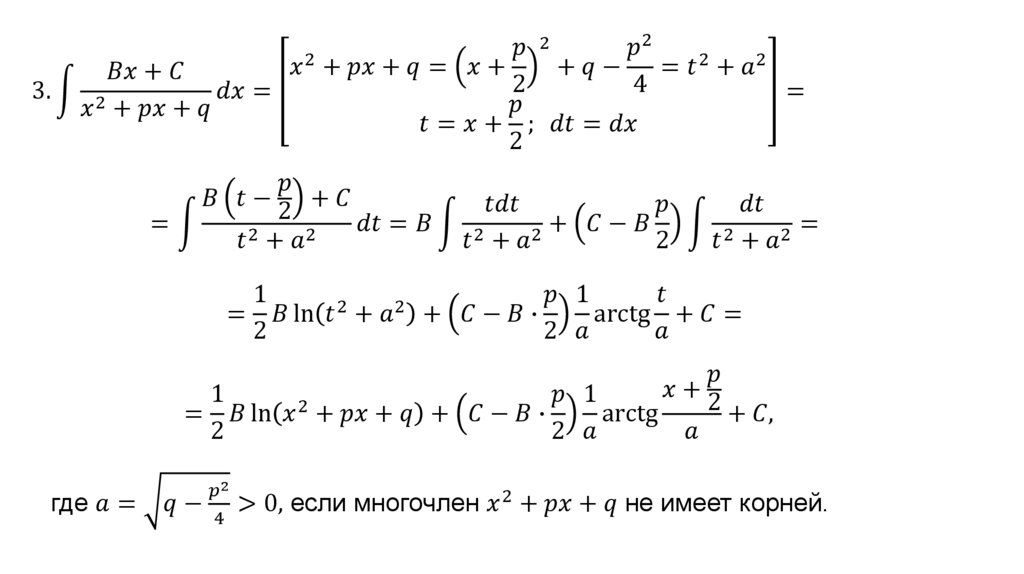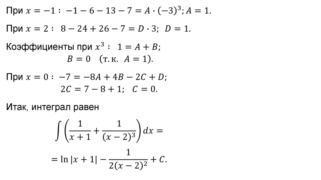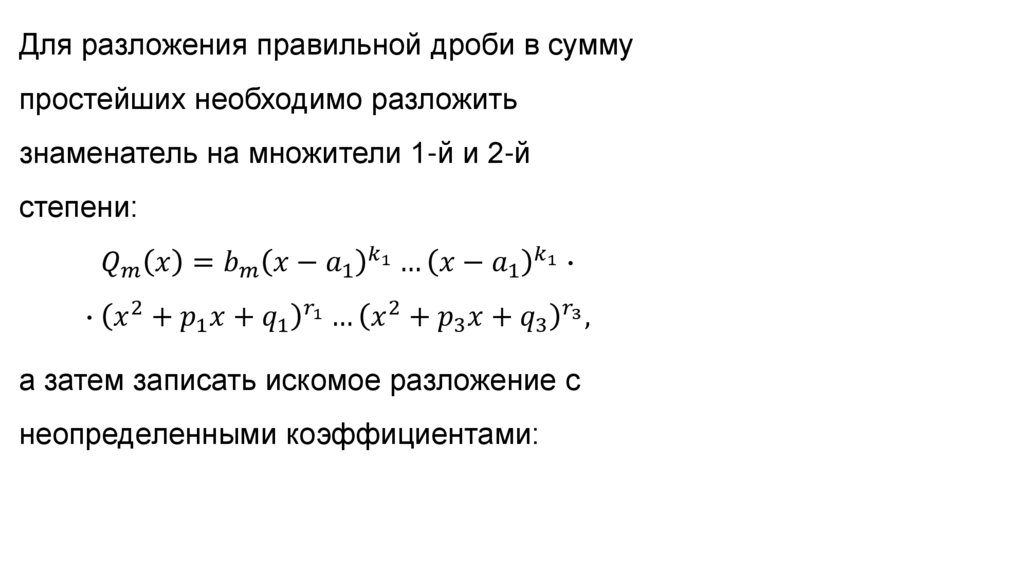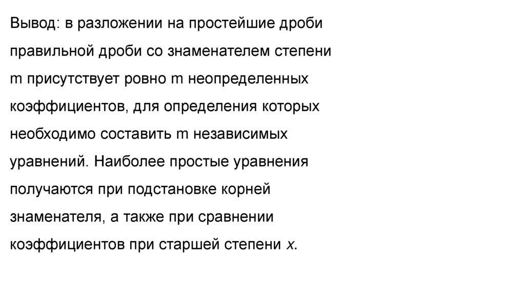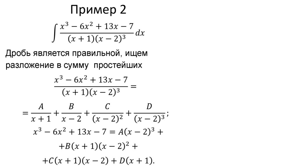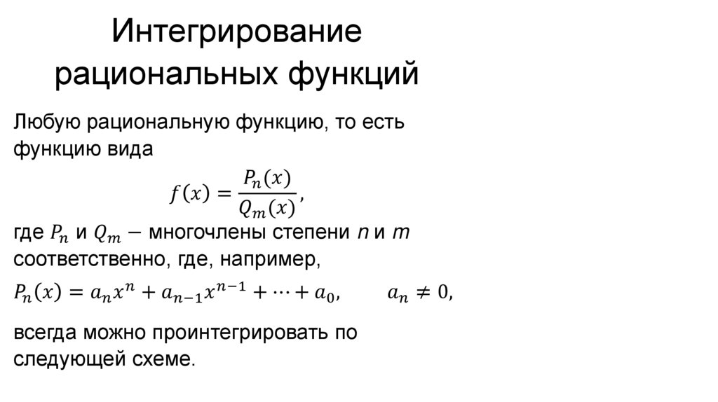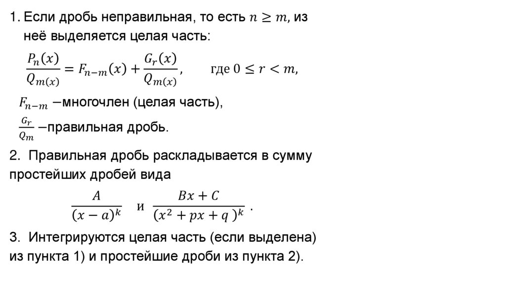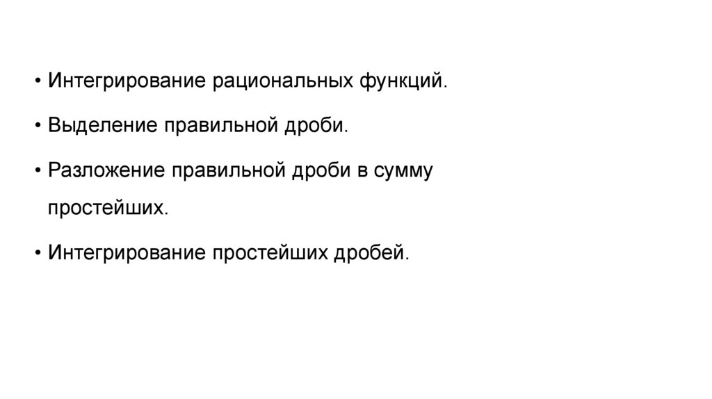 • Интегрирование рациональных функций.• Выделение правильной дроби.