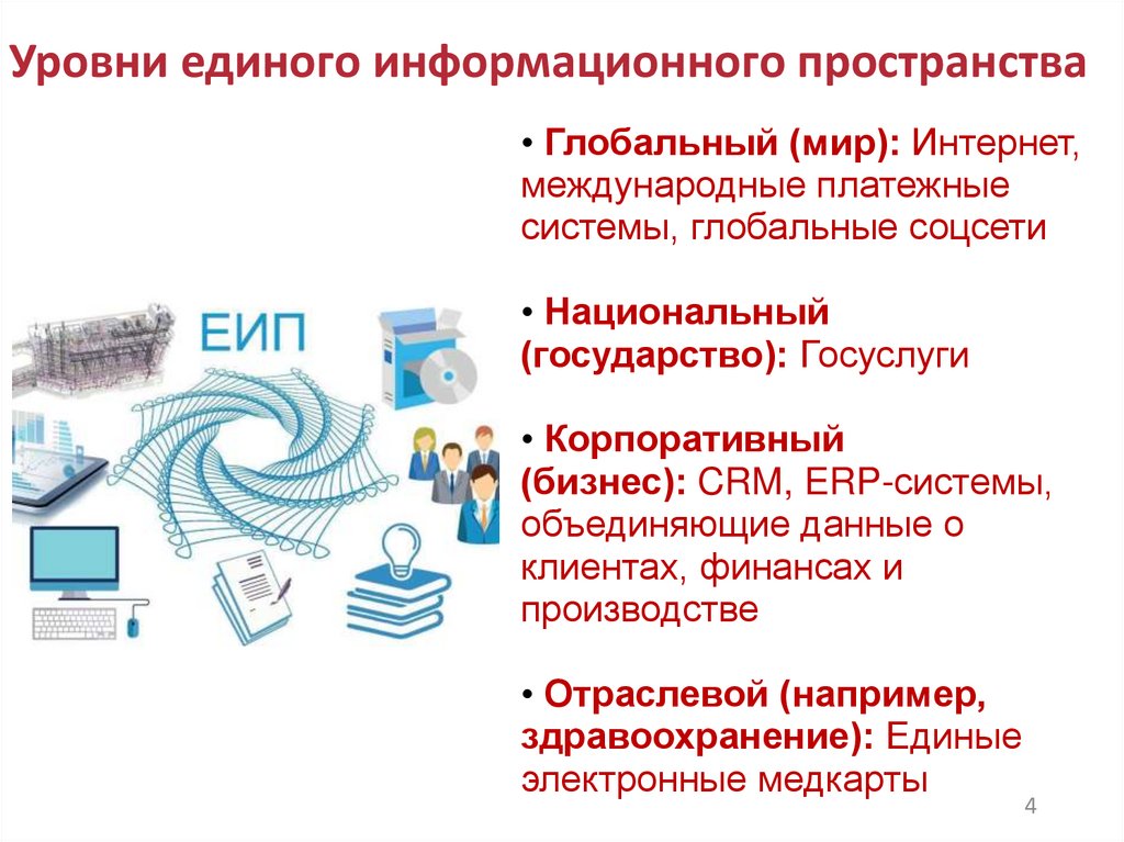 Уровни единого информационного пространства• Глобальный (мир): Интернет,