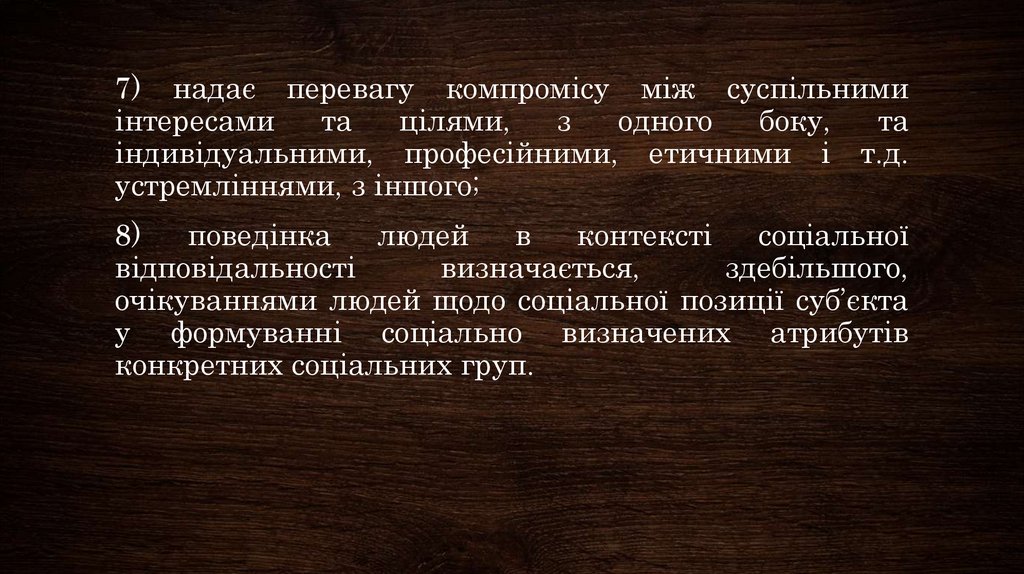 проголошує рівні соціальні права громадян і забезпечує їмоднакові соціальні умови та пільги. Соціальна відповідальність
