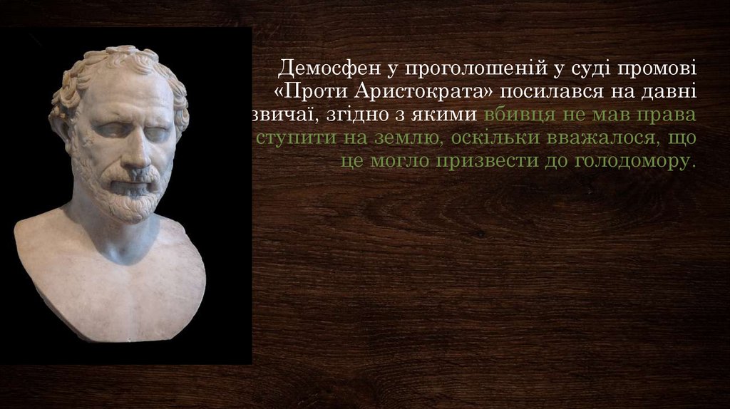 Демосфен у проголошеній у суді промові«Проти Аристократа» посилався на давні