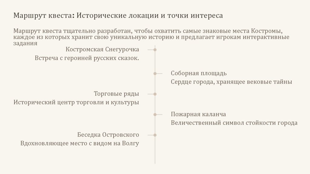 Маршрут квеста: Исторические локации и точки интересаМаршрут квеста тщательно разработан, чтобы охватить самые знаковые места Костромы,