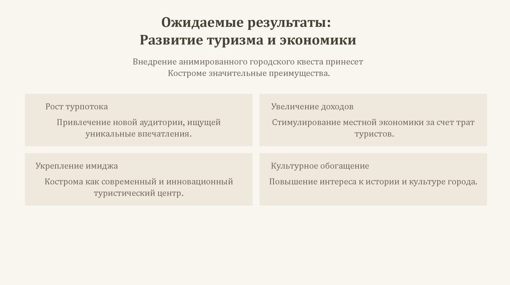 Ожидаемые результаты:Развитие туризма и экономики