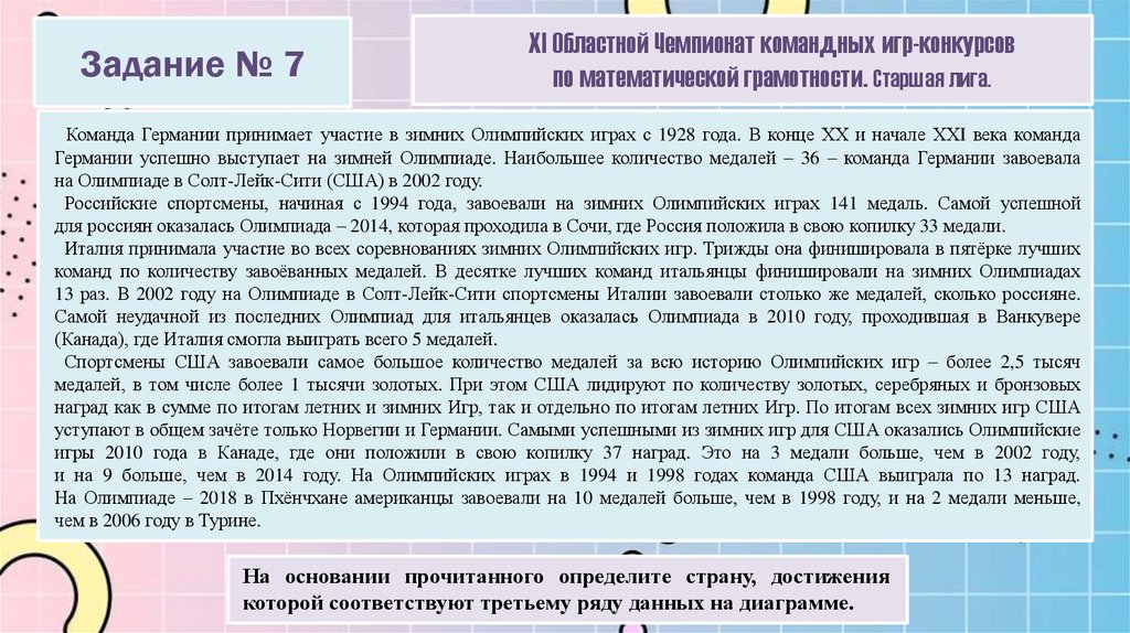 Задание № 3XI Областной Чемпионат командных игр-конкурсов