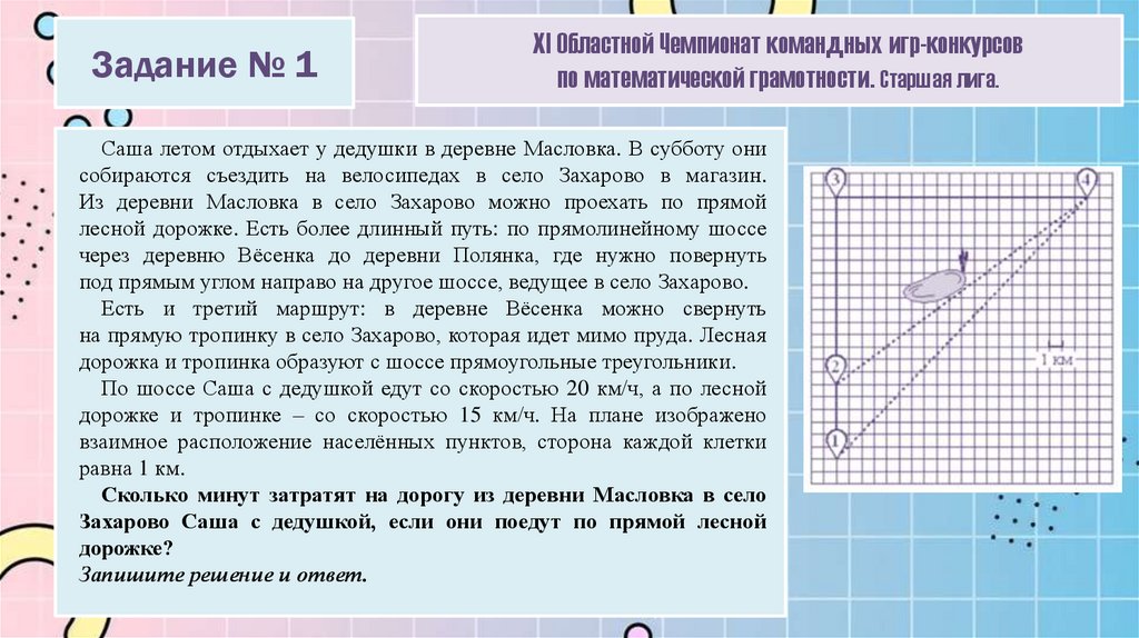 Задание № 1XI Областной Чемпионат командных игр-конкурсов