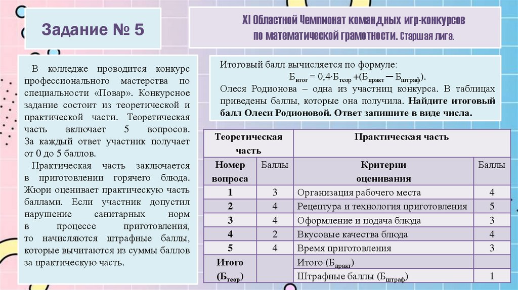 Задание № 8XI Областной Чемпионат командных игр-конкурсов