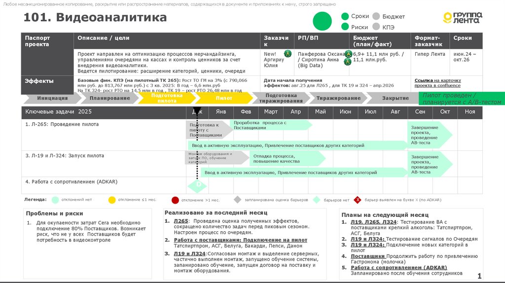 Любое несанкционированное копирование, раскрытие или распространение материалов, содержащихся в документе и приложениях к нему, строго запрещено101. Видеоаналитика