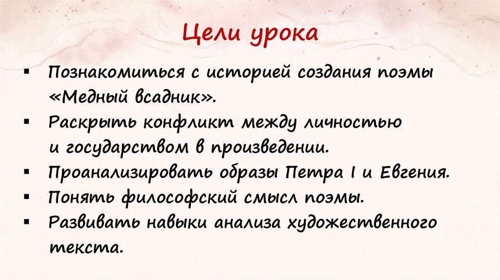 Цели урокаПознакомиться с историей создания поэмы