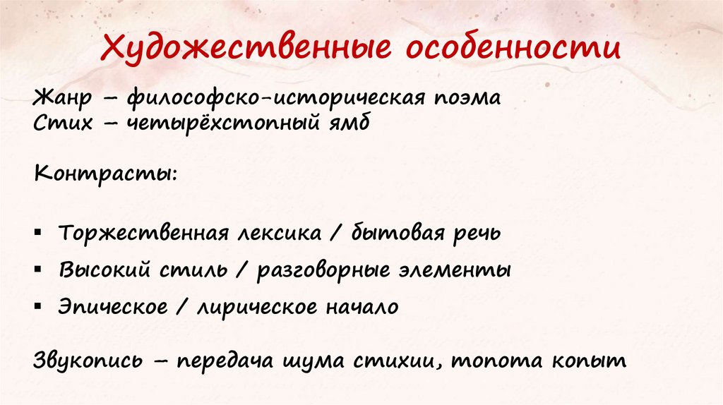 Художественные особенностиЖанр – философско-историческая поэма