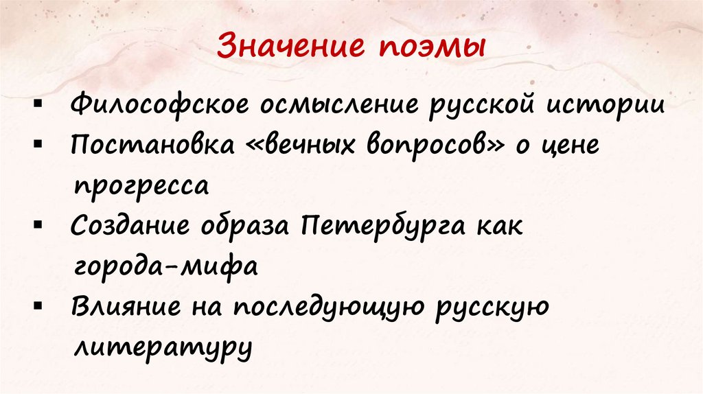 Значение поэмыФилософское осмысление русской истории