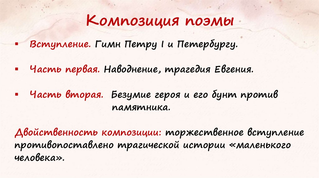 Композиция поэмыВступление. Гимн Петру I и Петербургу.