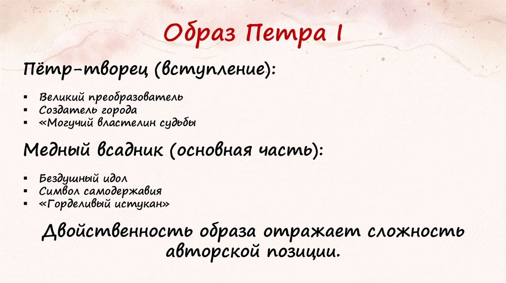 Образ Петра IПётр-творец (вступление):