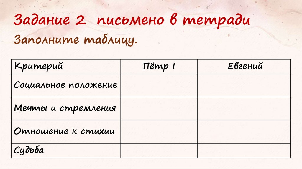 Задание 2 письмено в тетрадиЗаполните таблицу.