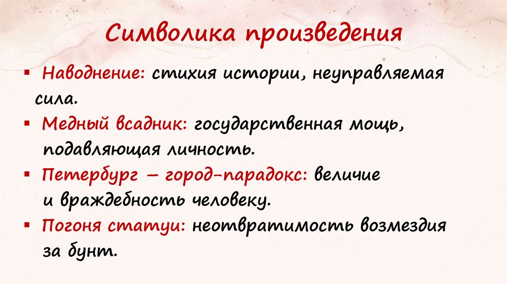 Символика произведенияНаводнение: стихия истории, неуправляемая