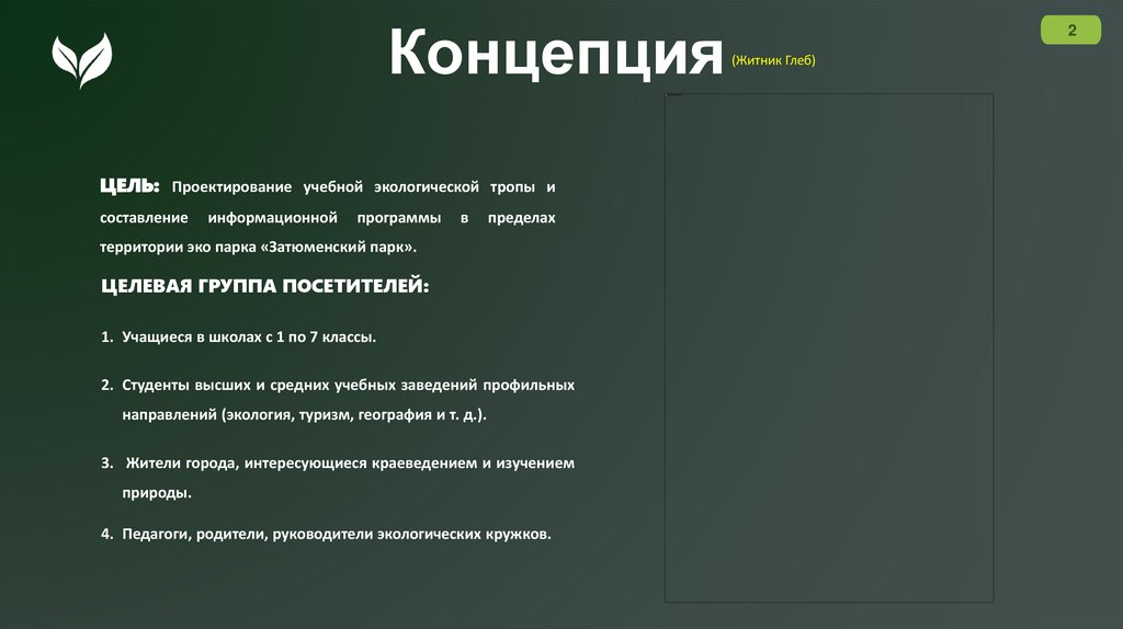 КонцепцияЦЕЛЬ: Проектирование учебной экологической тропы и