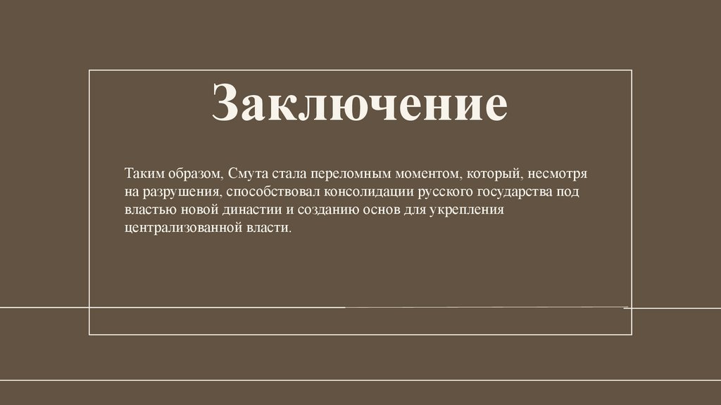 ЗаключениеТаким образом, Смута стала переломным моментом, который, несмотря