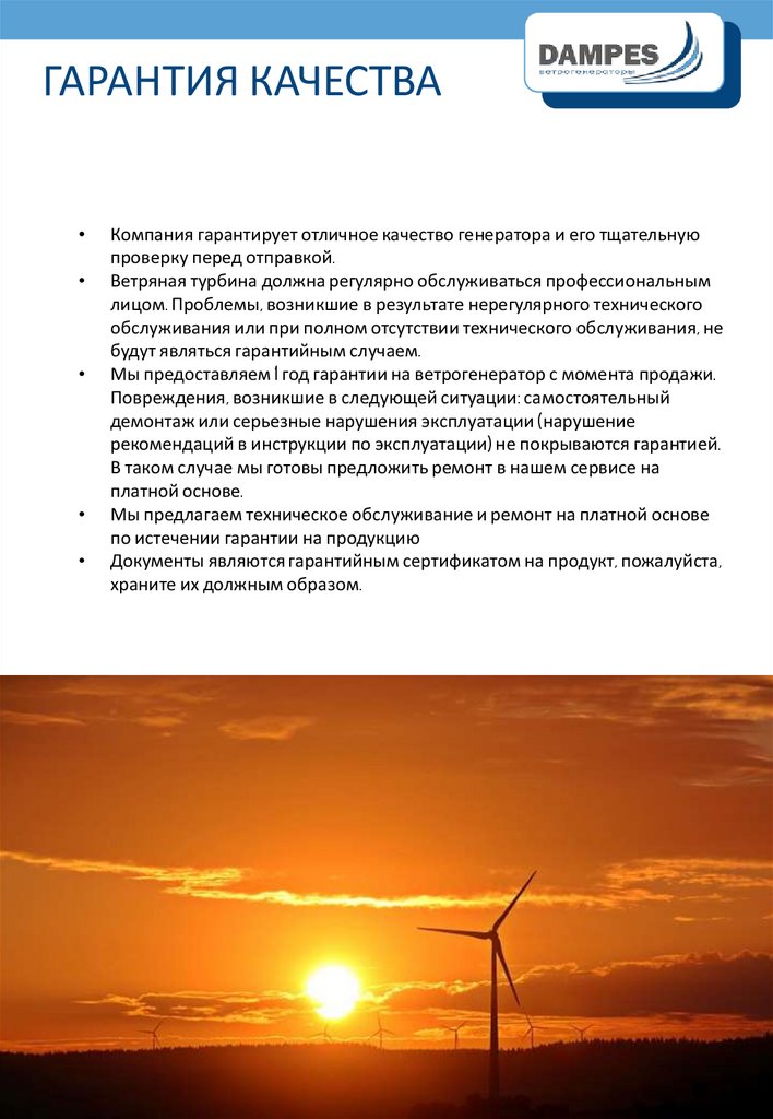 Мы предоставляем 1 год гарантии на ветрогенератор с момента продажи.
