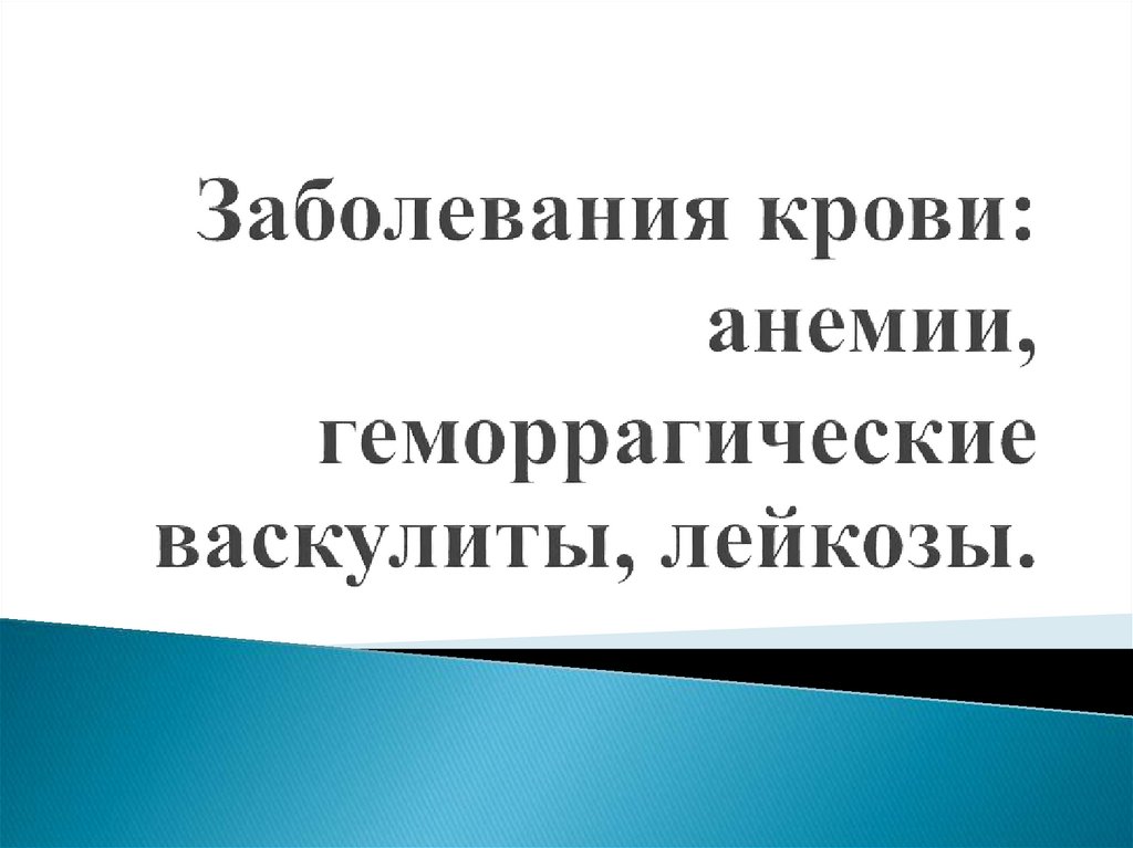 1. Заболевания крови: анемии, геморрагические васкулиты, лейкозы.