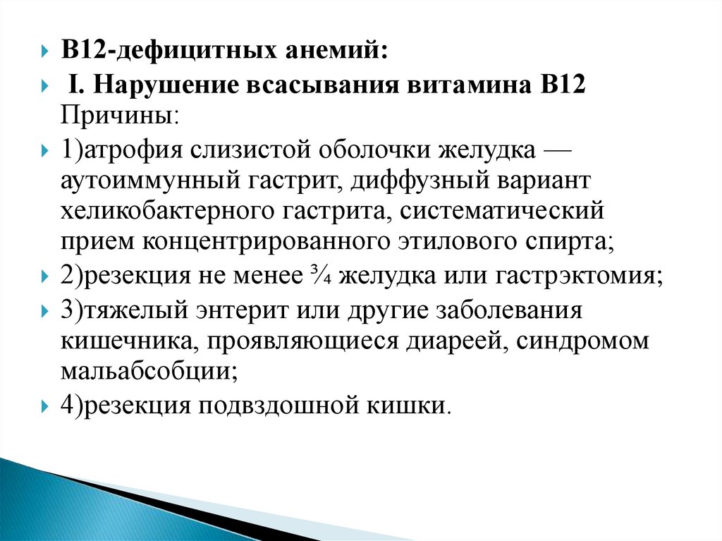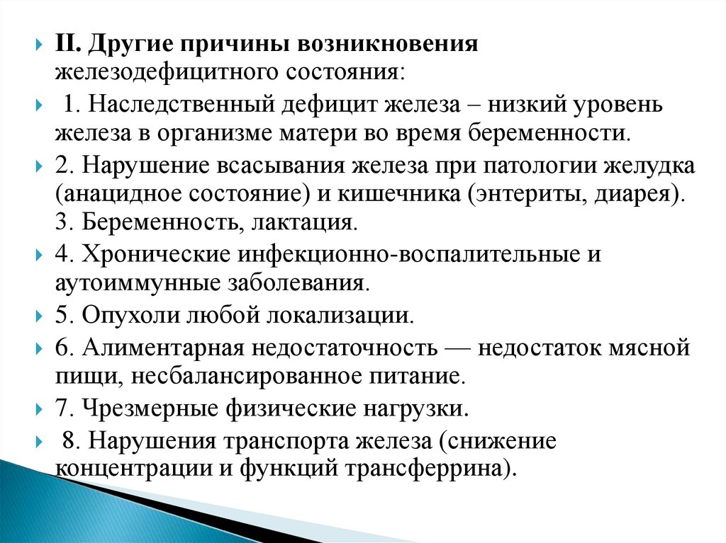 II. Другие причины возникновенияжелезодефицитного состояния: