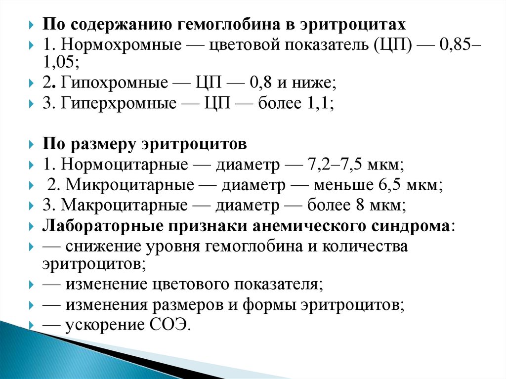 По содержанию гемоглобина в эритроцитах1. Нормохромные — цветовой показатель (ЦП) — 0,85–
