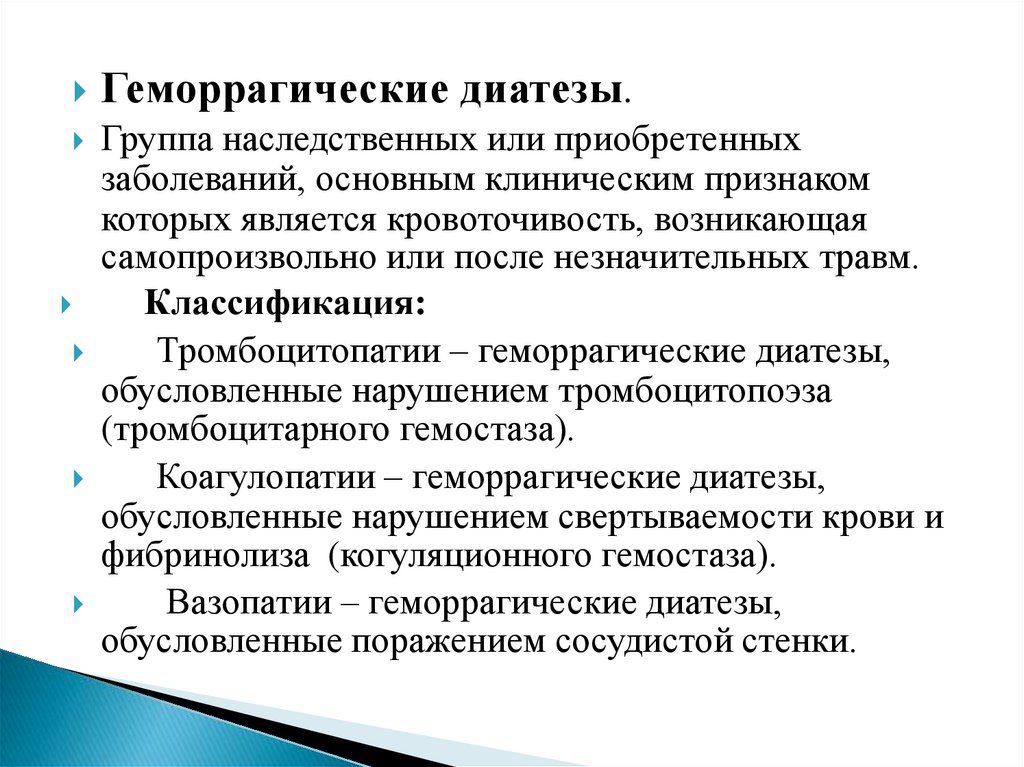 Геморрагические диатезы.Группа наследственных или приобретенных