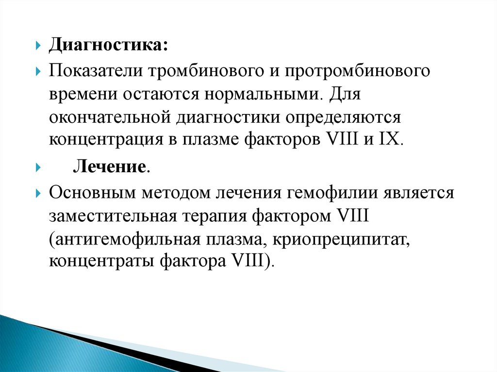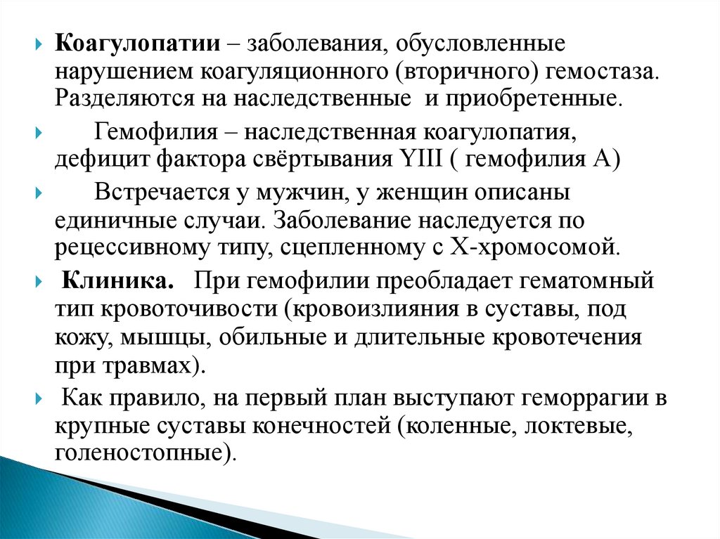 дефицит фактора свёртывания YIII ( гемофилия А)