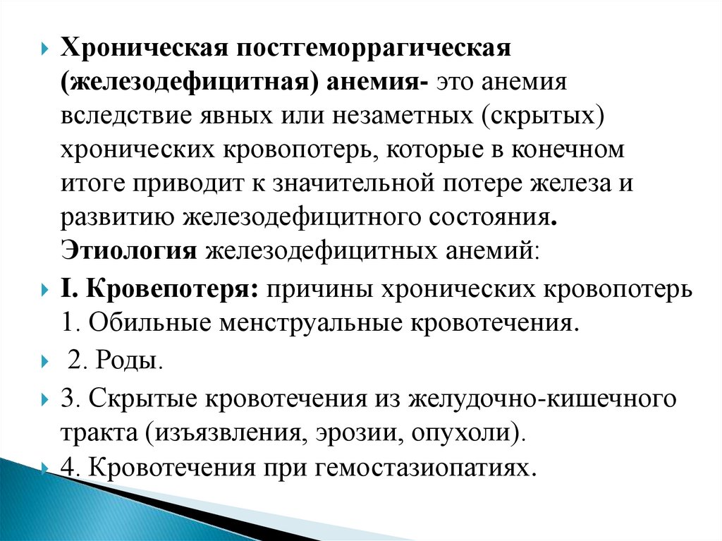 Хроническая постгеморрагическая(железодефицитная) анемия- это анемия
