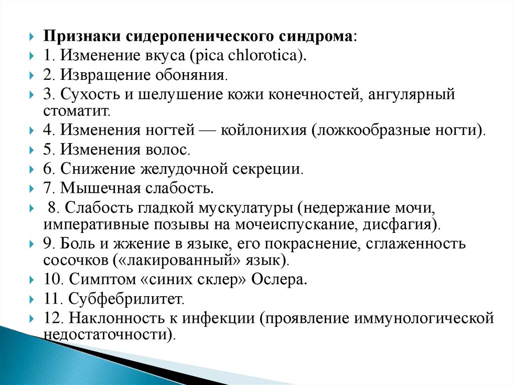 Клиника железодефицитных анемий.Складывается из 2 синдромов: