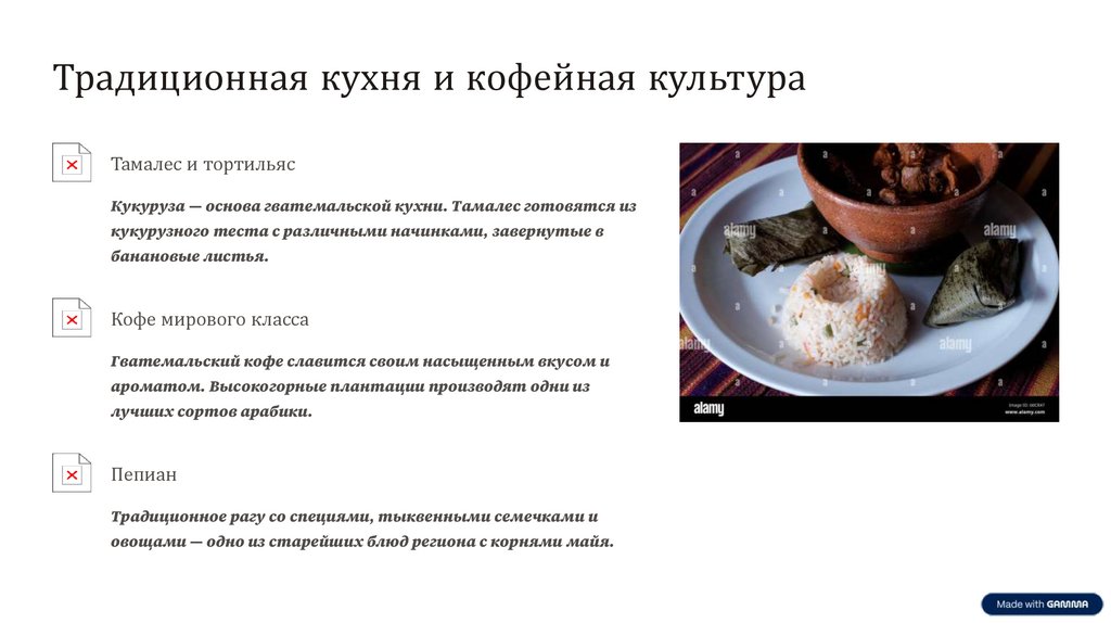 Традиционная кухня и кофейная культураТамалес и тортильяс