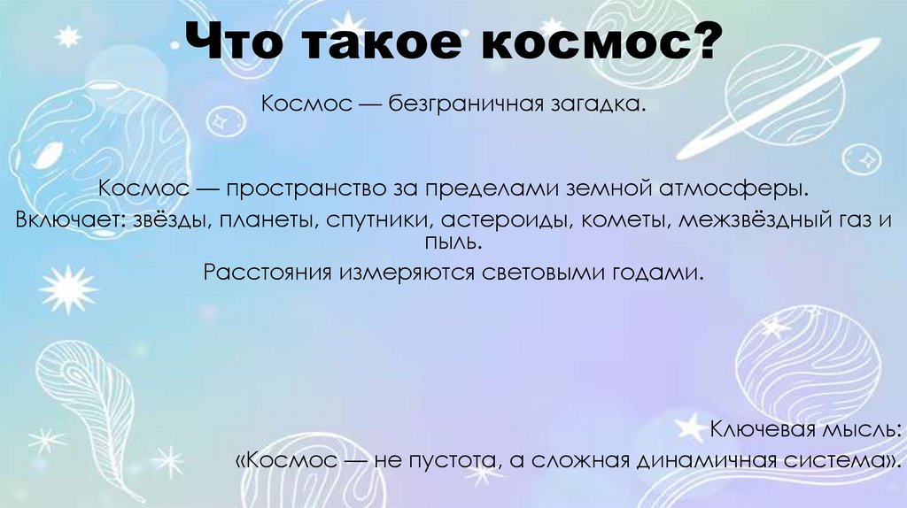 Что такое космос?Космос — безграничная загадка.