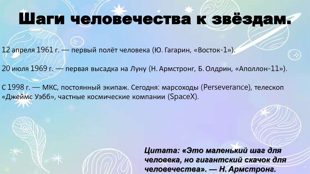 человечества». — Н. Армстронг.
