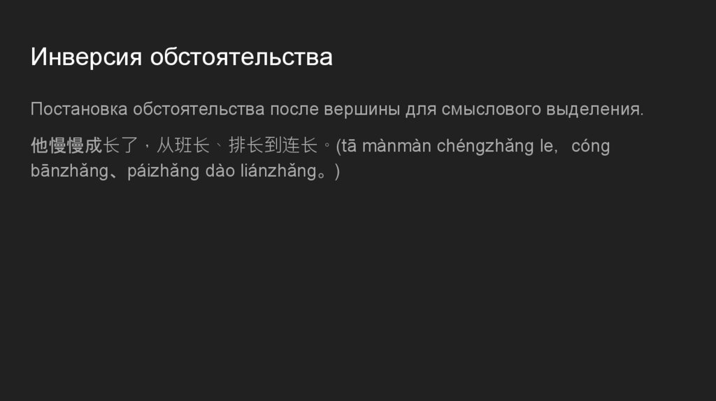 Инверсия обстоятельстваПостановка обстоятельства после вершины для смыслового выделения.