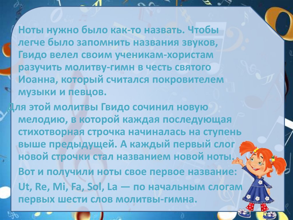 Ноты нужно было как-то назвать. Чтобылегче было запомнить названия звуков,