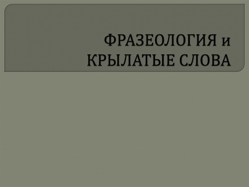 1. ФРАЗЕОЛОГИЯ и КРЫЛАТЫЕ СЛОВА