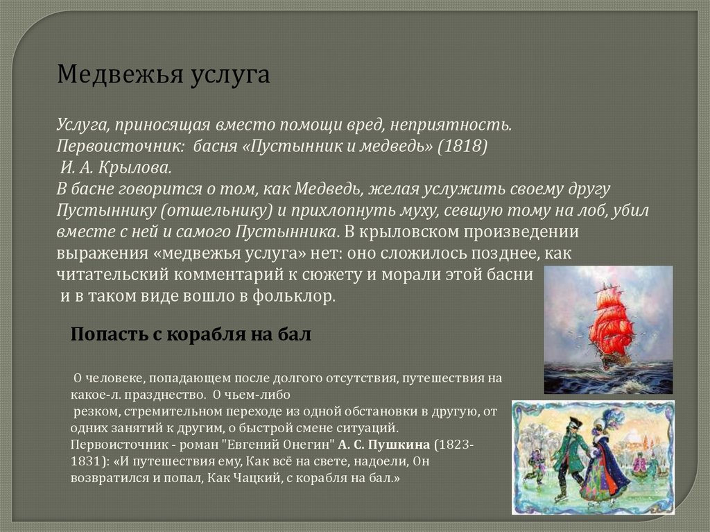 Первоисточник: басня «Пустынник и медведь» (1818)