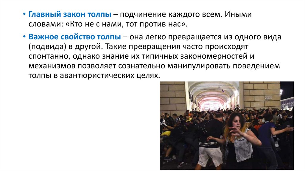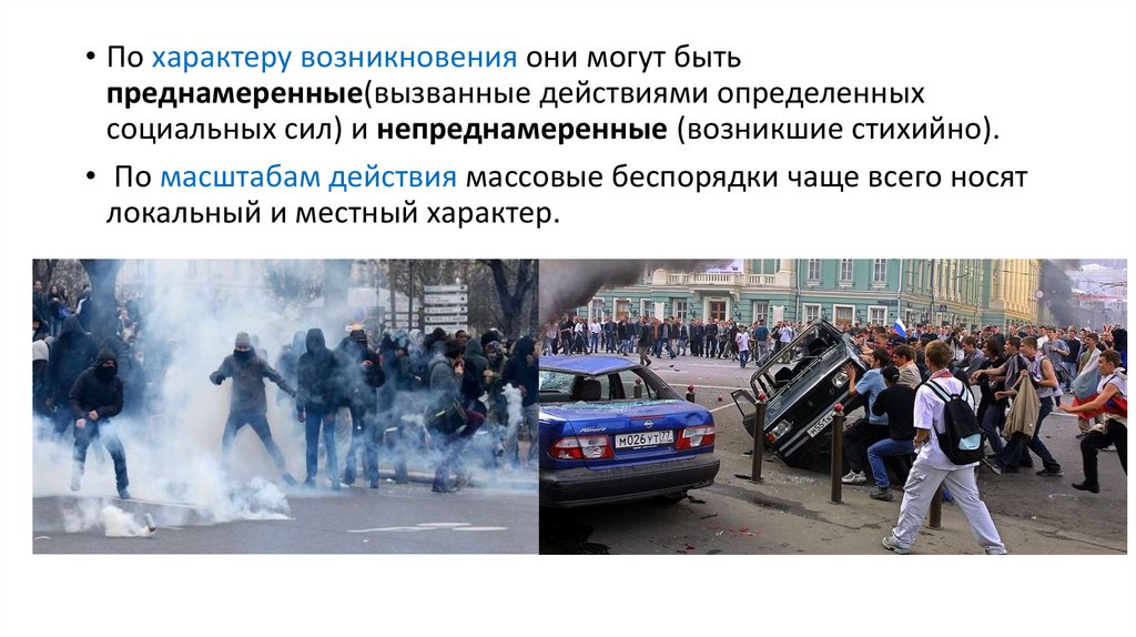 • Массовый беспорядок- любое нарушение порядка с участиембольшого количества людей.