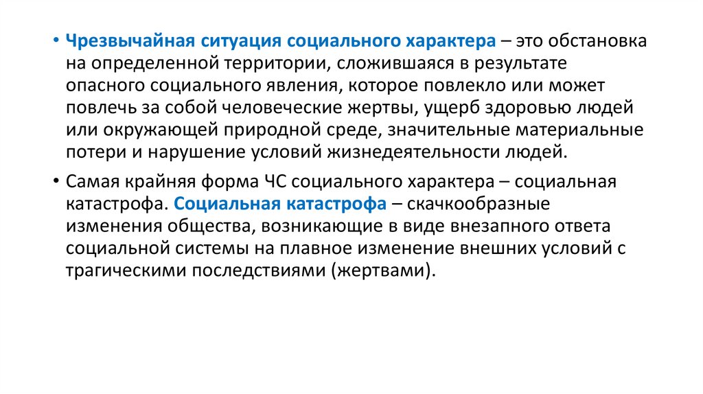 3. Понятие социальной опасности, чрезвычайной ситуации социального характера, социальной катастрофы.