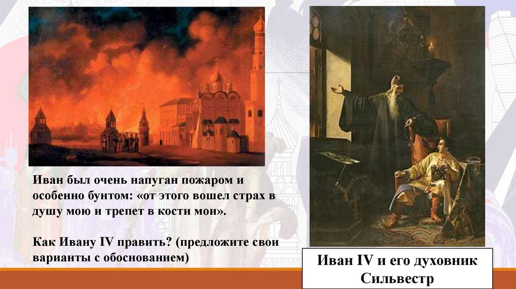 Иван был очень напуган пожаром иособенно бунтом: «от этого вошел страх в
