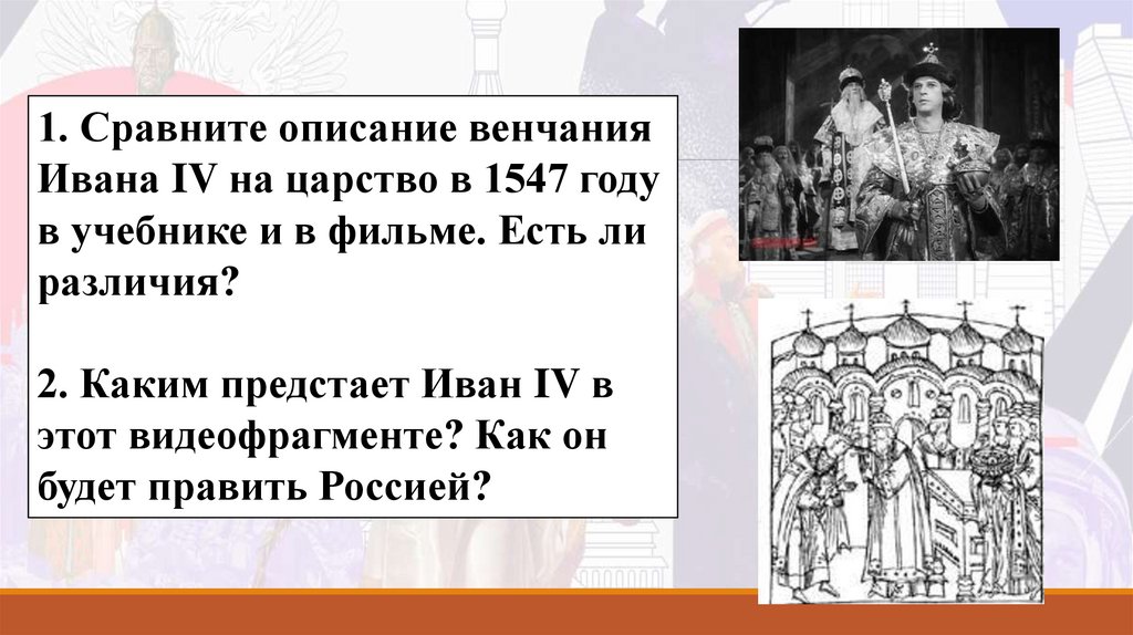 1. Сравните описание венчанияИвана IV на царство в 1547 году